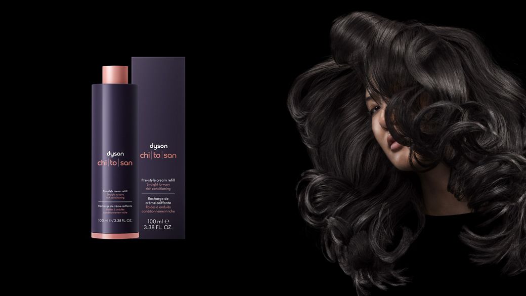 However, Dyson Chitosan™ Pre-style cream and Post-style serum are the only styling products specifically designed and tested to work with Dyson hair care devices, following the same engineering mindset. So if you already own a Dyson hair care device, or you’re looking to buy one, the Dyson Chitosan™ hair styling range is the perfect partner to help your styles, last longer, even in high humidity. 3