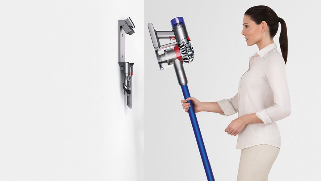 Always handy on the wall-mounted charging dock, your Dyson V8™ vacuum is easy to store – and ready to go when you need it.