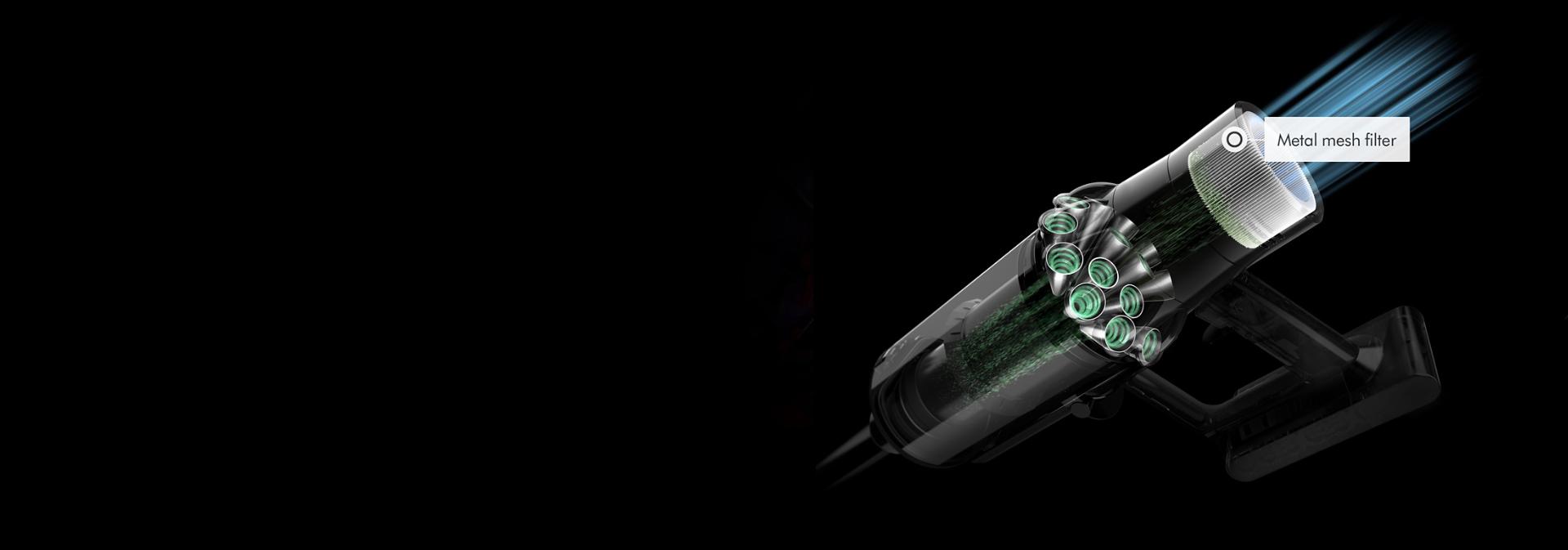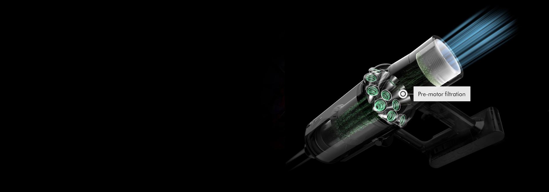 All our cordless vacuums use at least five layers of advanced, whole-machine filtration to capture 99.97% of particles as small as 0.3 microns.¹