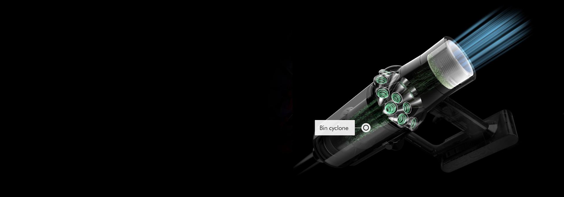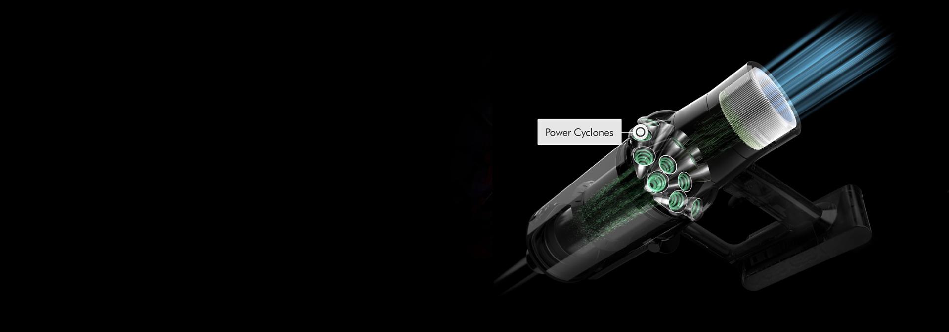 Generate strong centrifugal forces to capture fine dust with no loss of suction.